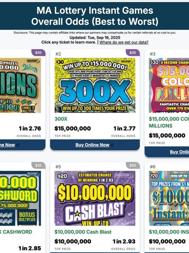 Bundle lottery results data with live state by state tracking of remaining prizes and winning odds on over 1,000 scratch ticket games in near real-time.
